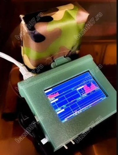 | Большой дисплей | отображает спектр, пишет в цифрах частоту максимального по уровню сигнала, сохраняет историю сигналов (красным). |